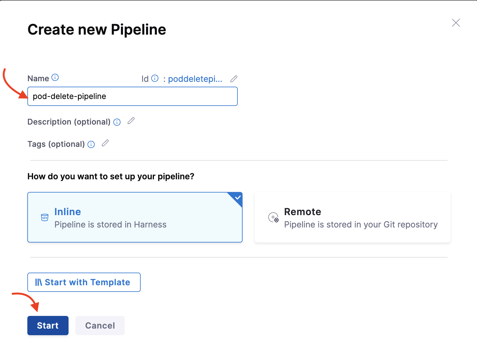 Provide a name, and click Start.