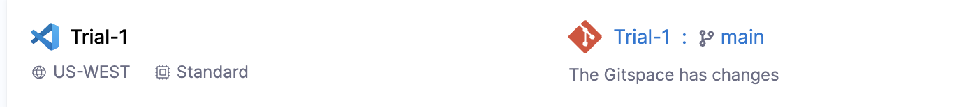 - Any change in the Gitspace will appear in the Gitspace details, with the status updating from “No changes” to “Has Changes.”