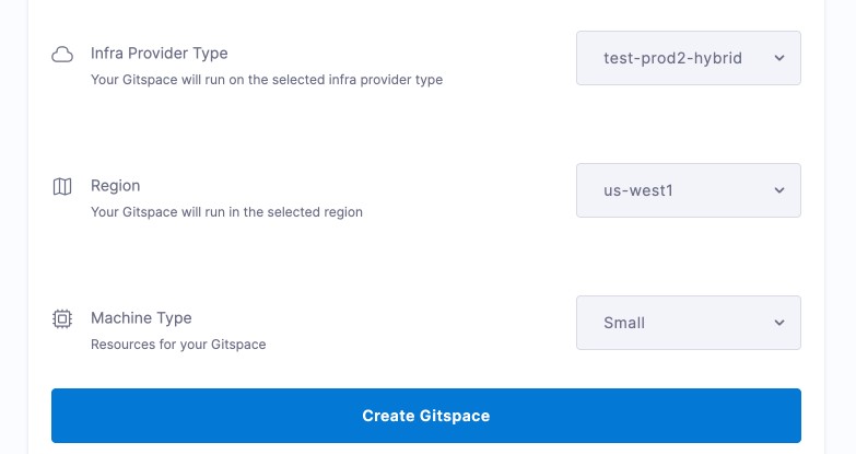 Click Create Gitspace.