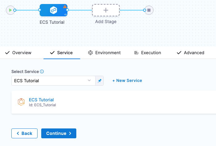 - Define your ECS container and service specs in Harness.