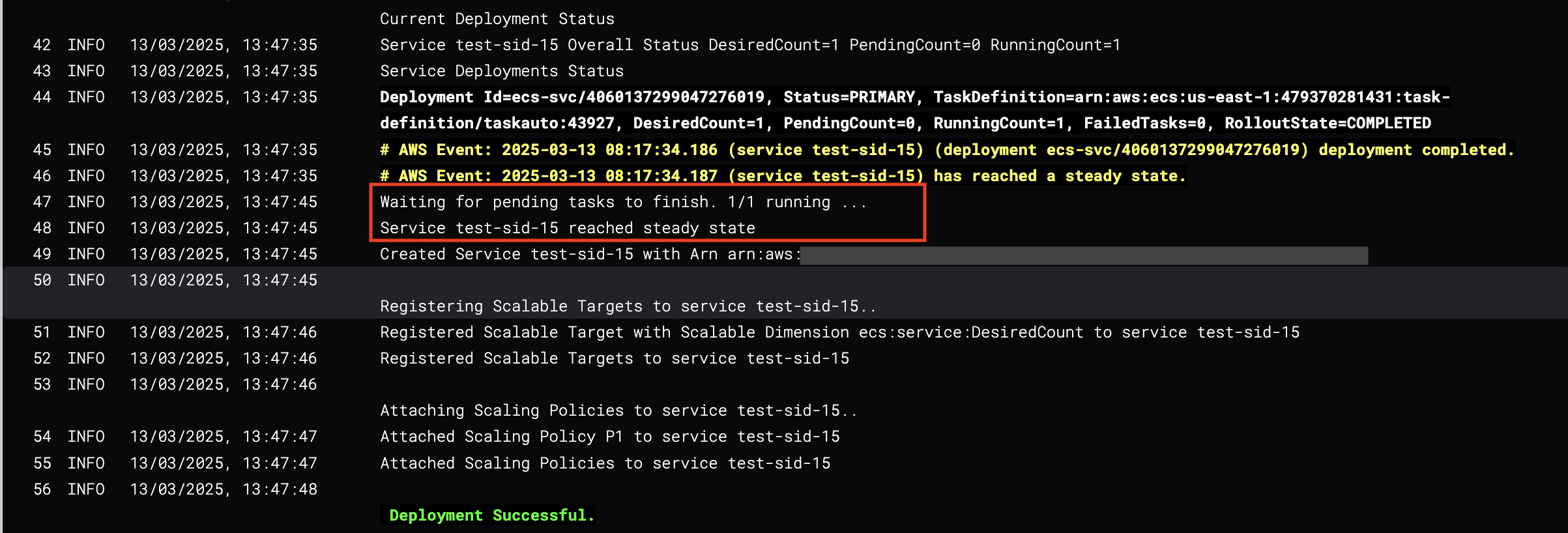 | Deployment | Rollback Data Captured | Task Definition Created | Result |