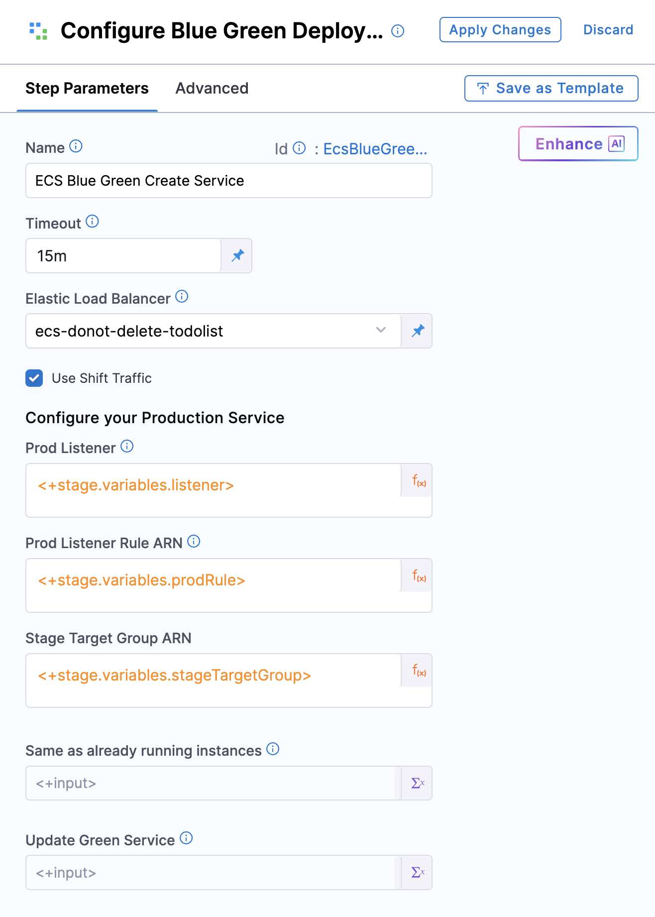 Select the Use Shift Traffic checkbox to enable the ECS Blue-Green Traffic Shifting step.