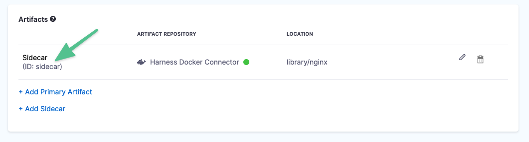 Once your artifact is added, you can see the Id in Artifacts. For example, the Id here is sidecar.