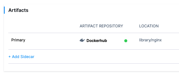 You can add a primary artifact and multiple sidecar artifacts. The sidecars are treated the same as the primary artifact. Both are deployed to the target infrastructure in the Infrastructure Definition.