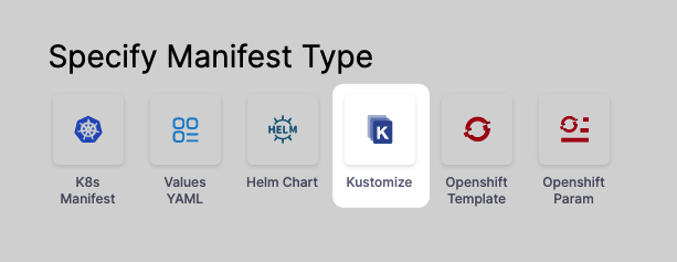 In Specify Manifest Type, click Kustomize, and click Continue.