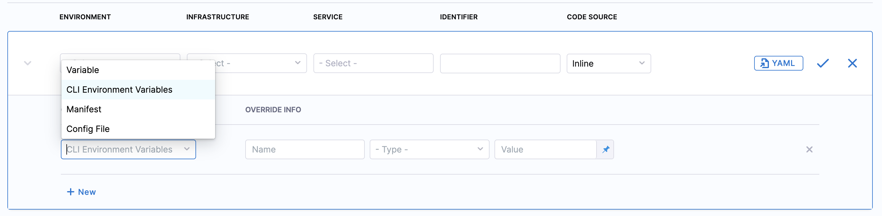 - In Service, select a service you want to override when it is deployed to the selected environment.