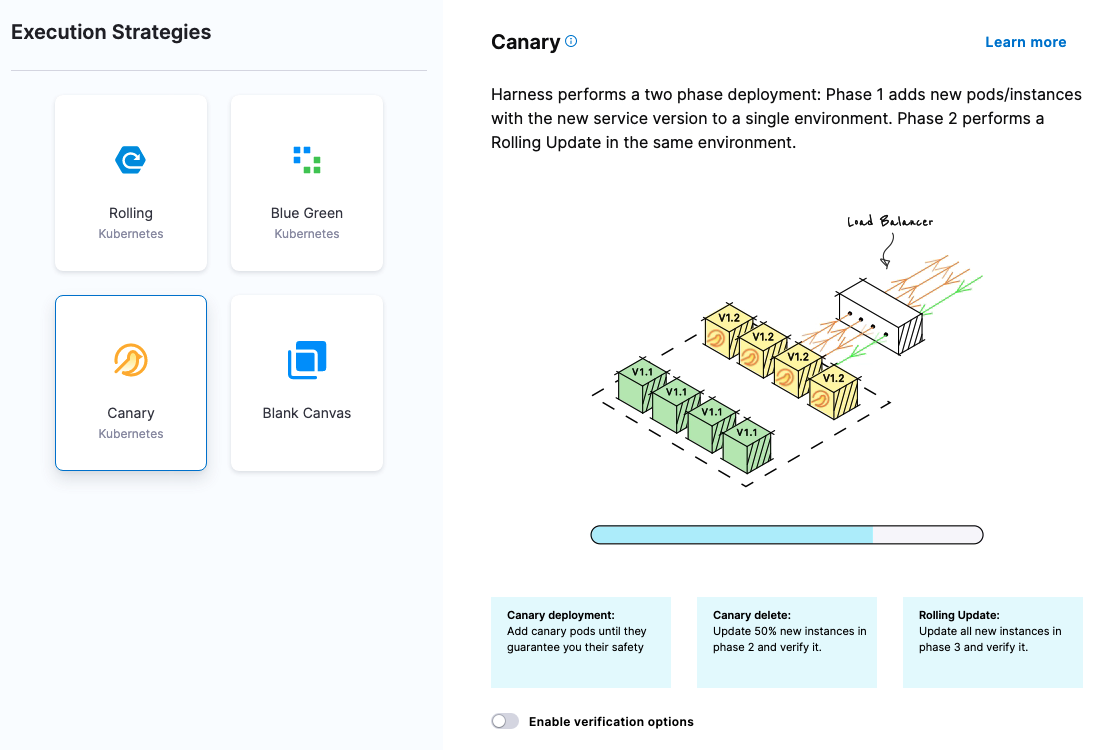 You have likely heard terms like blue/green and canary when it comes to deploying code and applications into production. These are common deployment strategies, available in Harness CD as stage strategies, along with others.