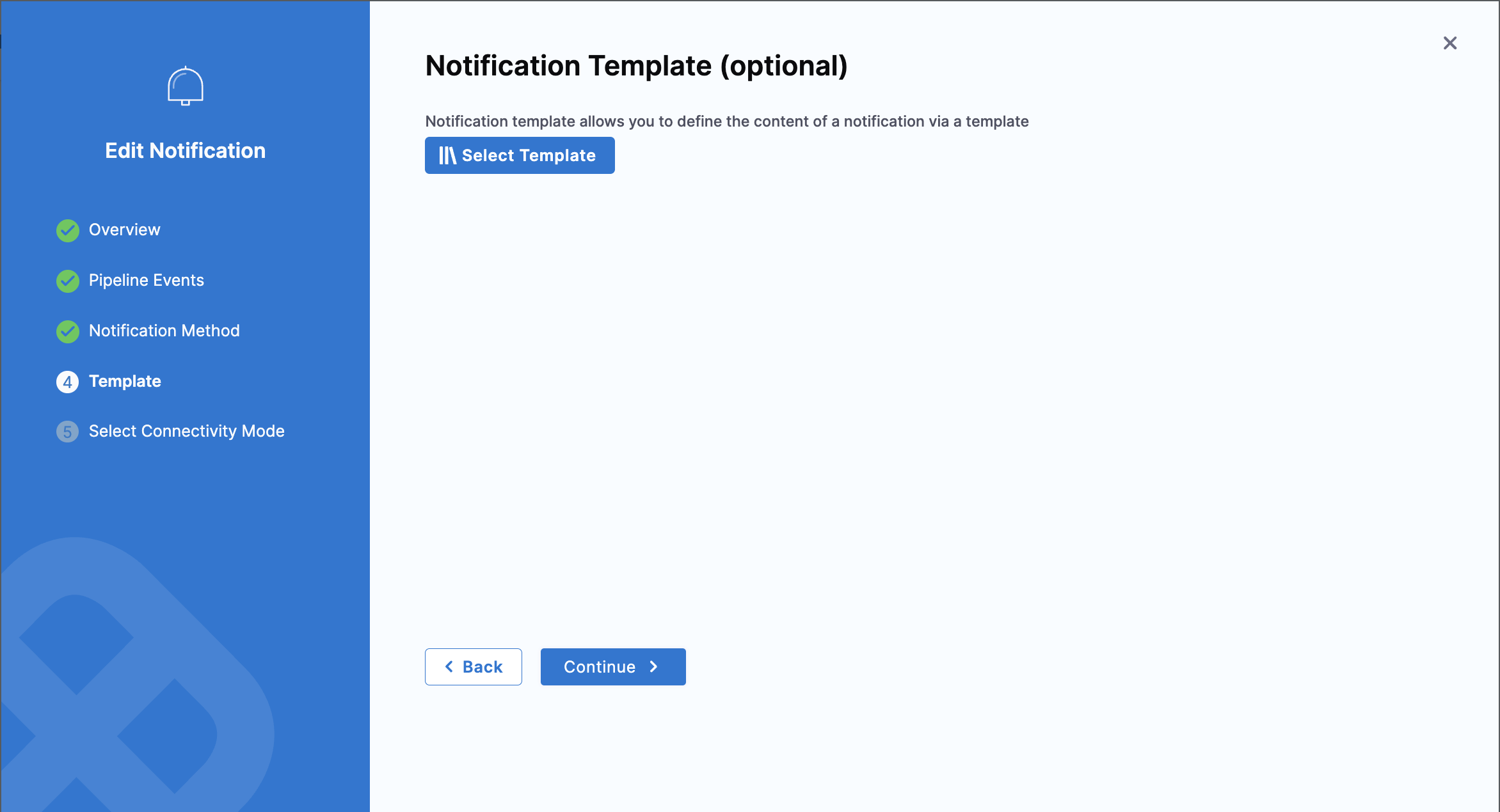 When you select Connect through Harness Delegate, and click on Continue, you will be asked to select the Delegate that this pipeline notification rule will use, in Delegate Setup.