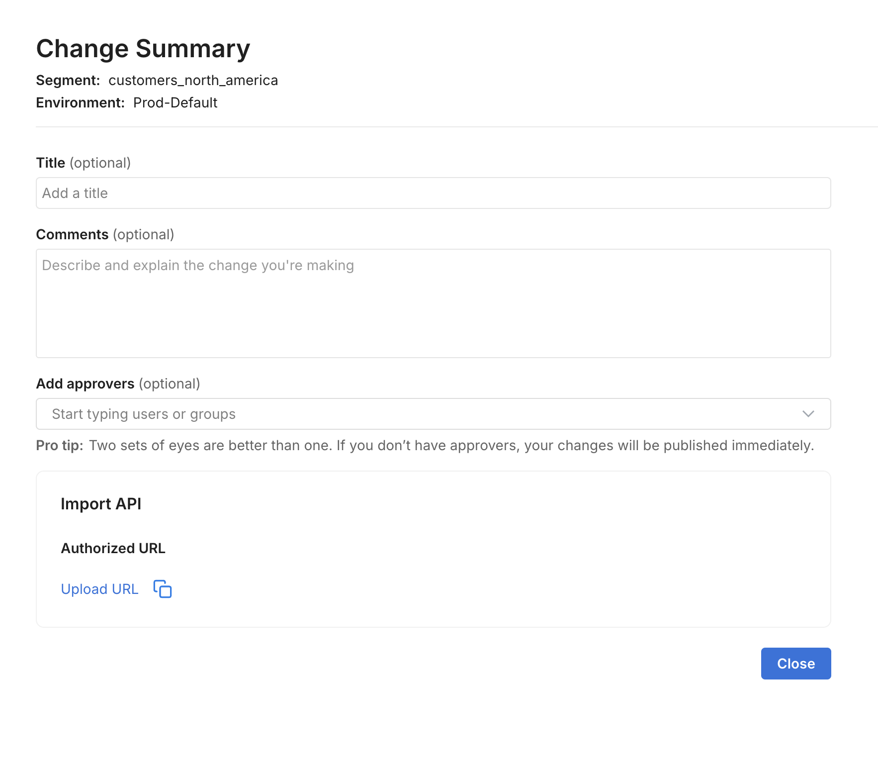 Run the curl command from the location of your CSV file. You may need to wait a moment for the command to complete. During this time, the segment will show pending changes in Harness.