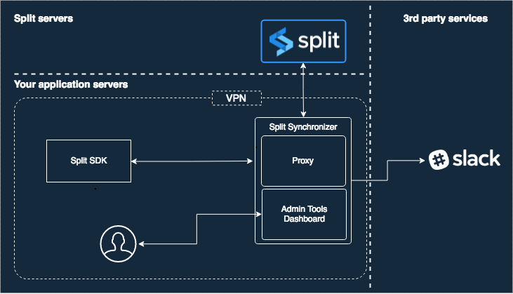 The Split Proxy enables you to deploy a service in your own infrastructure that behaves like Harness servers and is used by both server-side and client-side SDKs to synchronize the flags without connecting to Harness FME's actual backend directly.