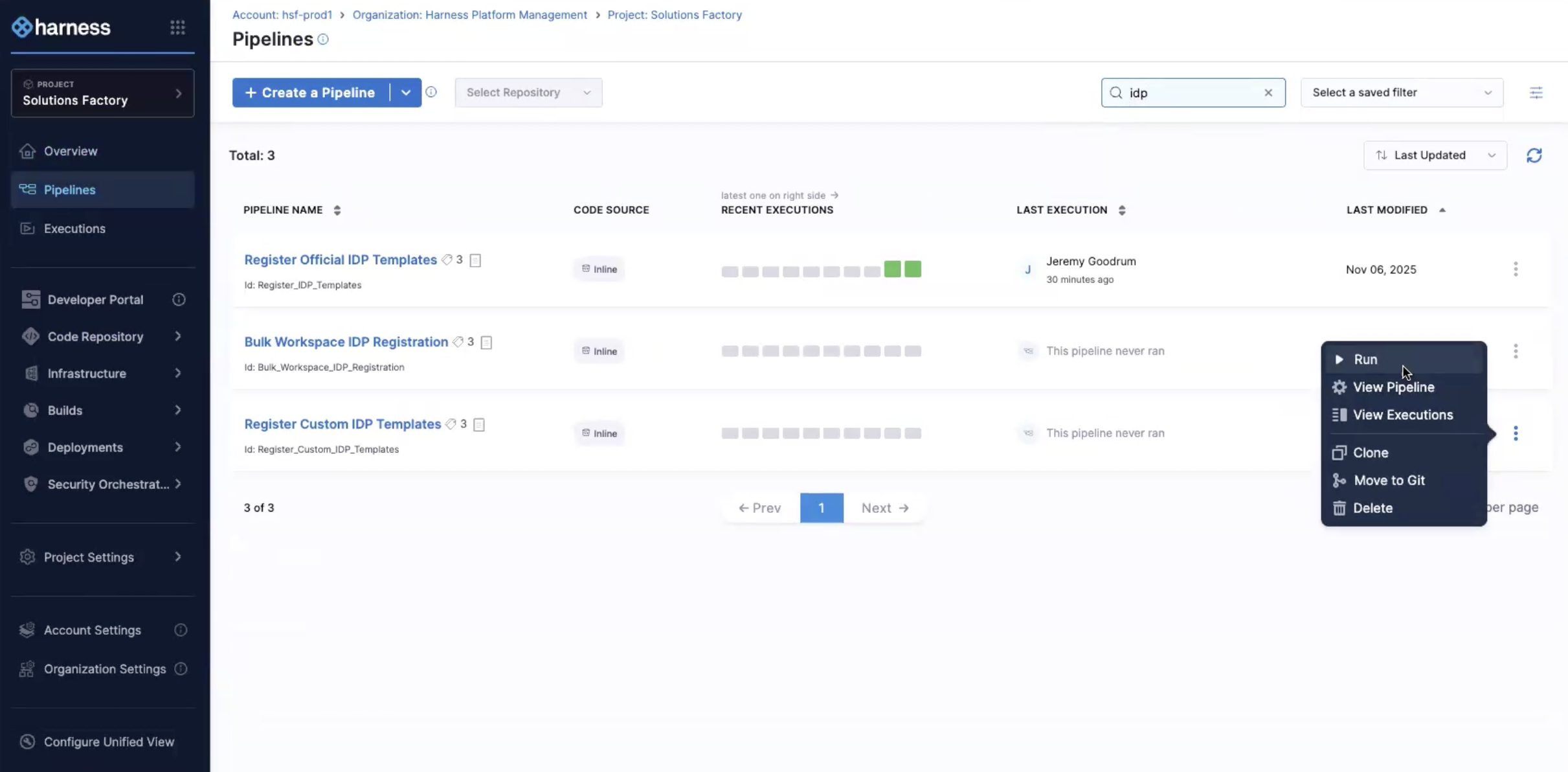 custom-harness-template-library— Go to Pipelines and runBulk Workspace Management