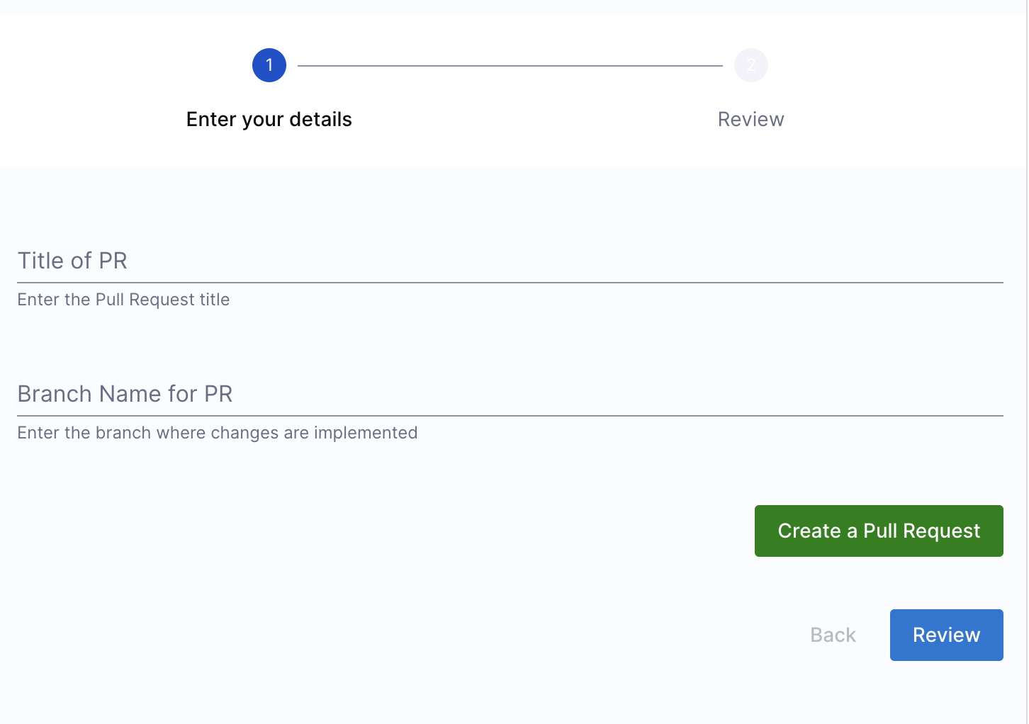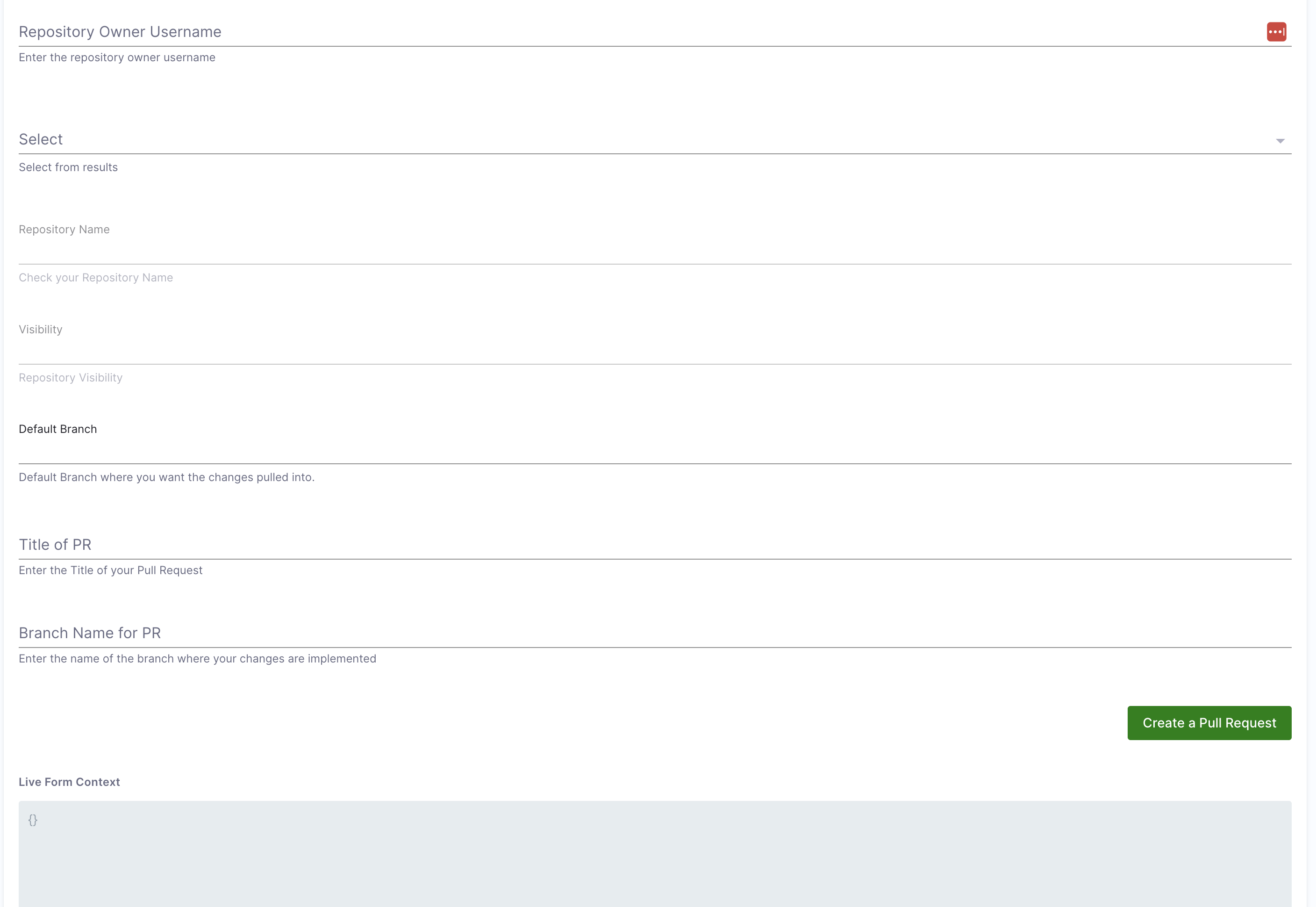 - PR Title: User input for the Pull Request title.