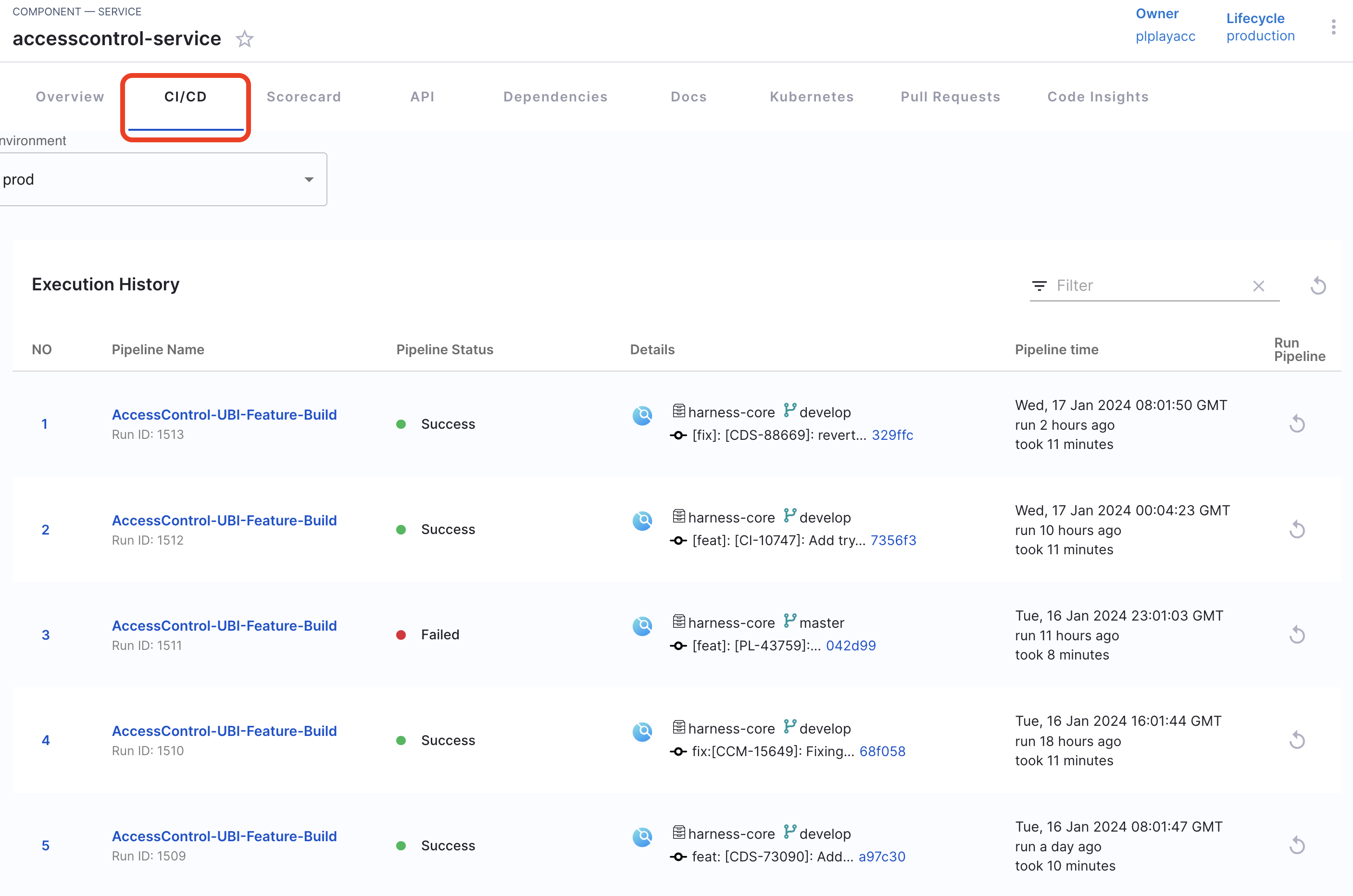 EntityHarnessCiCdContentof Harness CI/CD tab.