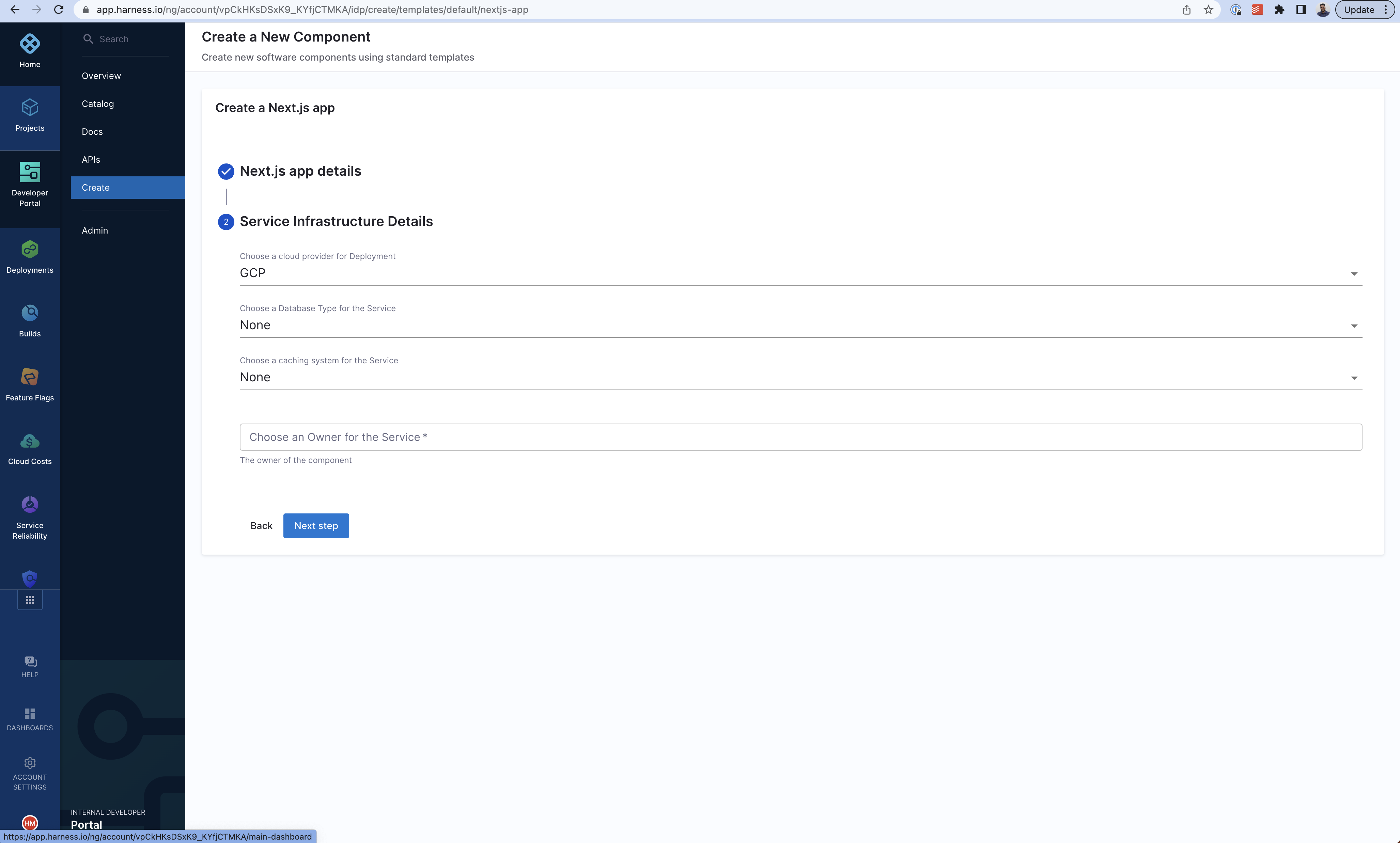This tutorial is designed to help a platform engineer to get started with Harness IDP. We will create a basic service onboarding pipeline that uses a software template and provisions a Next.js application for a developer. After you create the software template, developers can choose the template on the Create page and enter details such as a name for the application and the path to their Git repository. The service onboarding pipeline creates a hello world repository for storing code.