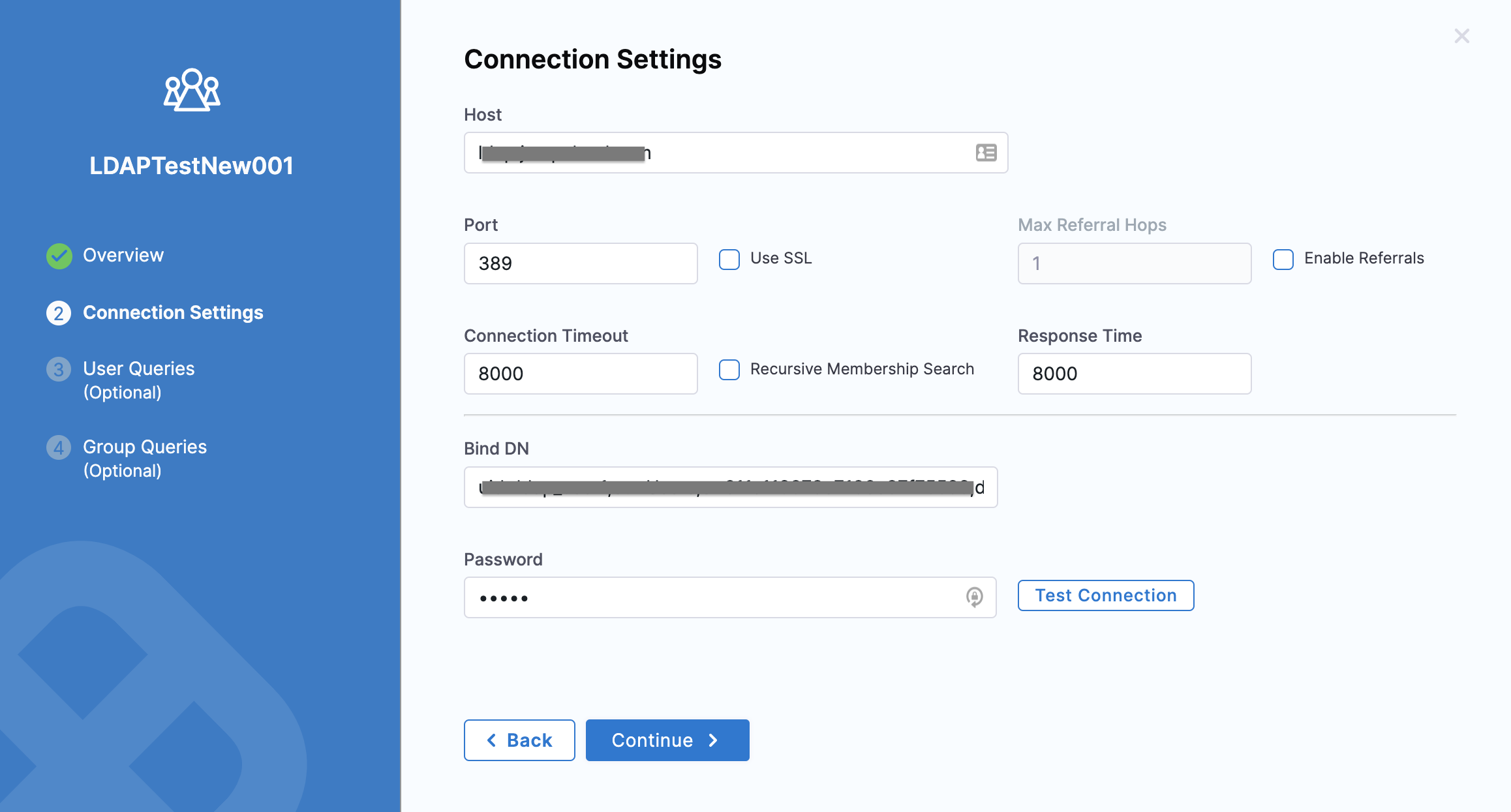 Click Test Connection. Once the connection is successful, click Continue.
