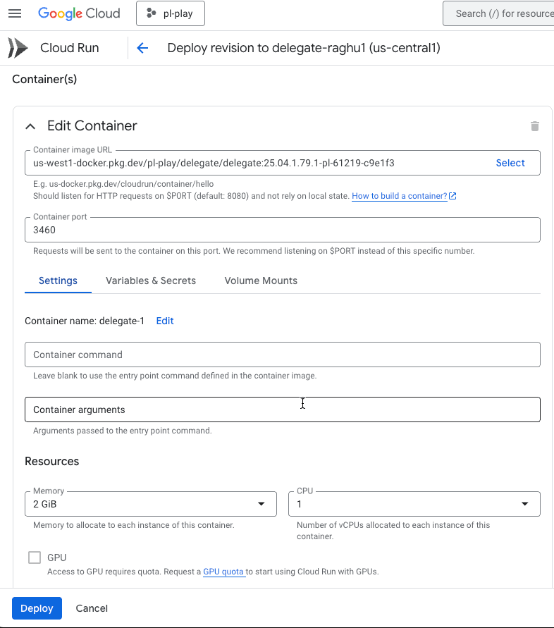Install a delegate on Google Cloud Run