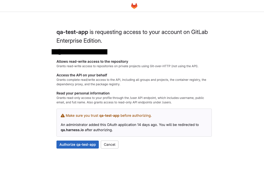 Click on Authorize on the Gitlab page, the access token will be created.