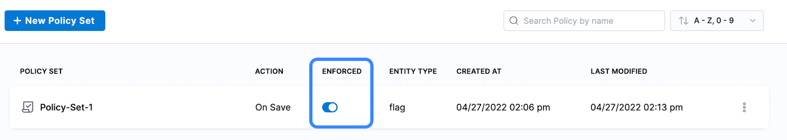 - The Policy Set is automatically set to Enforced, to make it unenforced, toggle off the Enforced button.