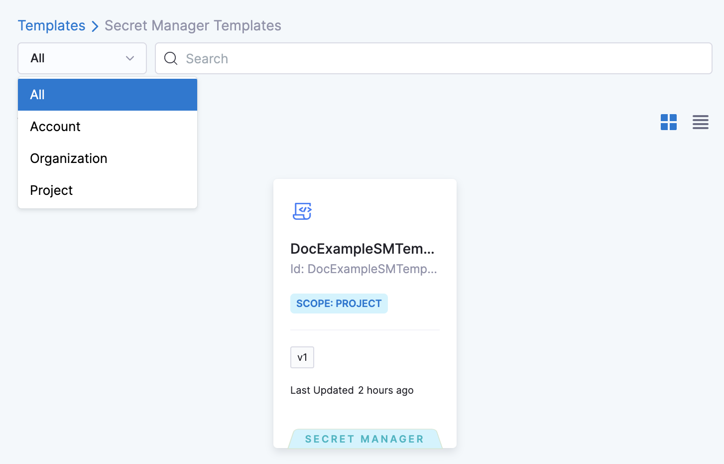Select the desired scope and select a Secret Manager Template from the Template Library.
