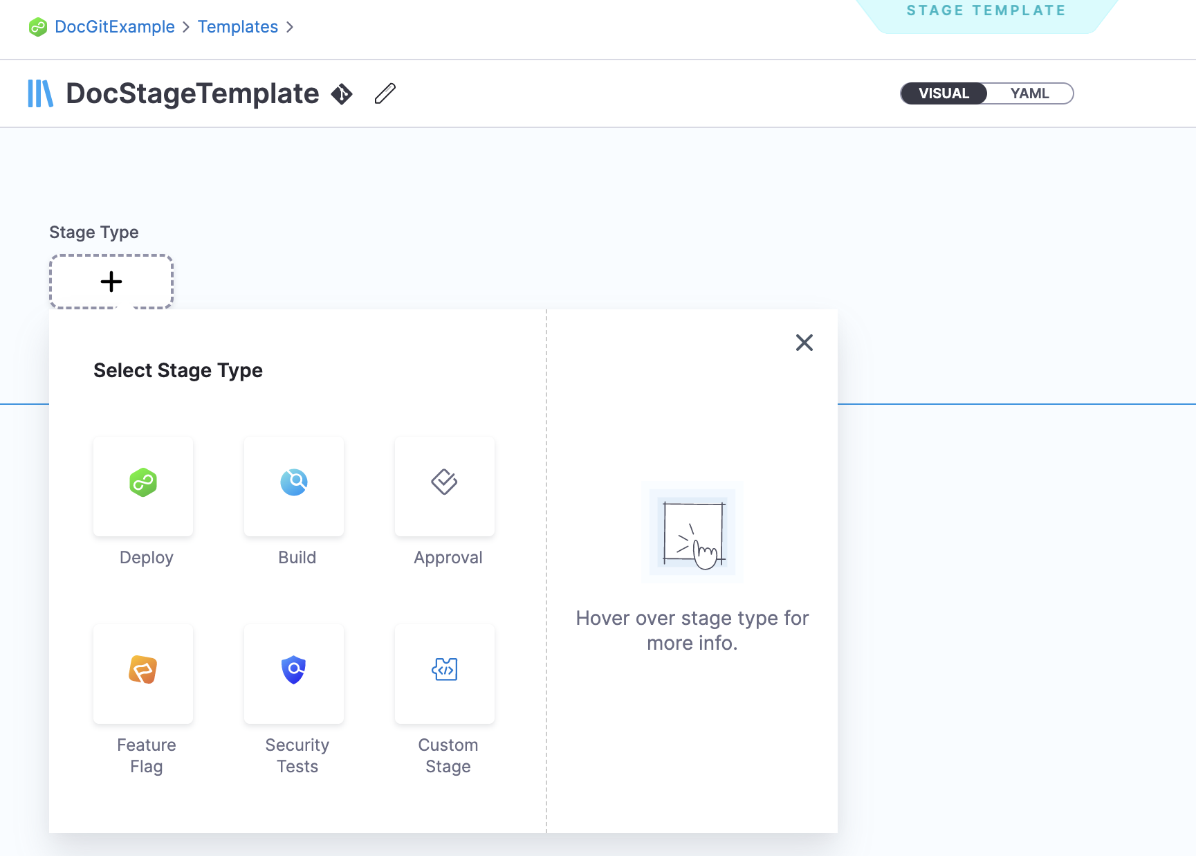- Click the YAML file to see the YAML for the stage template.