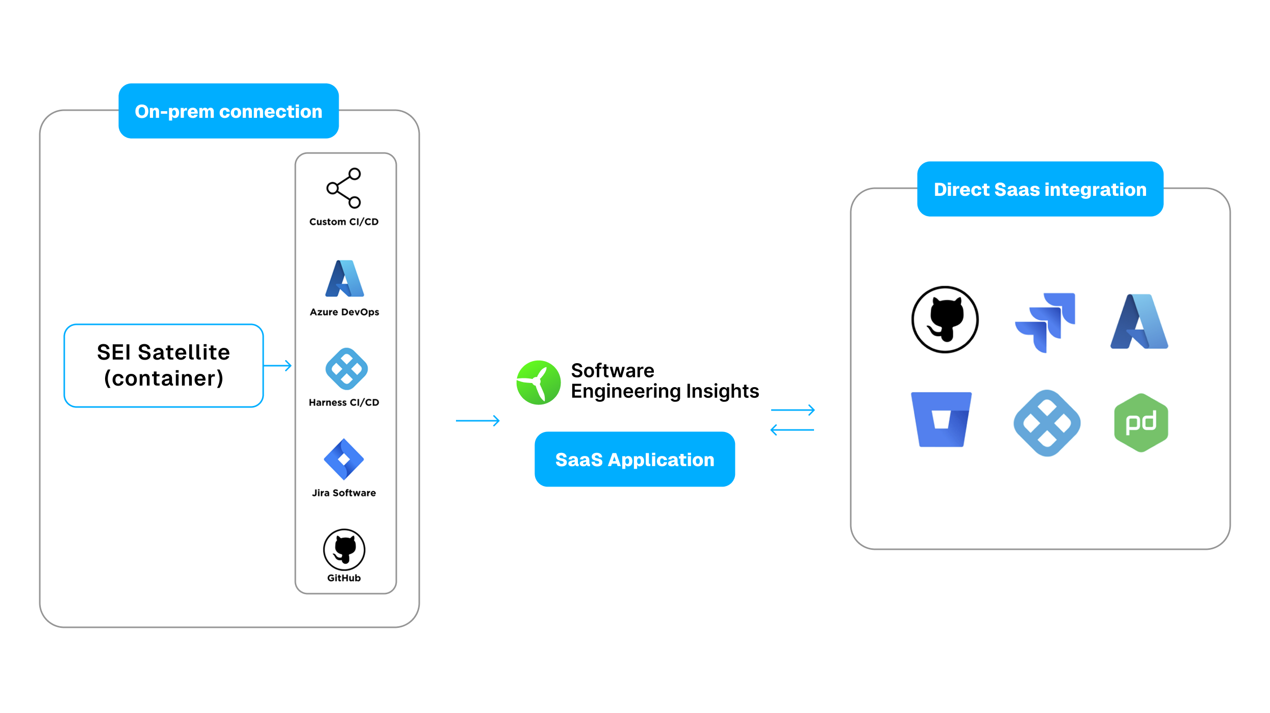 Harness SEI connects directly to various cloud-based tools via their native APIs. For example: