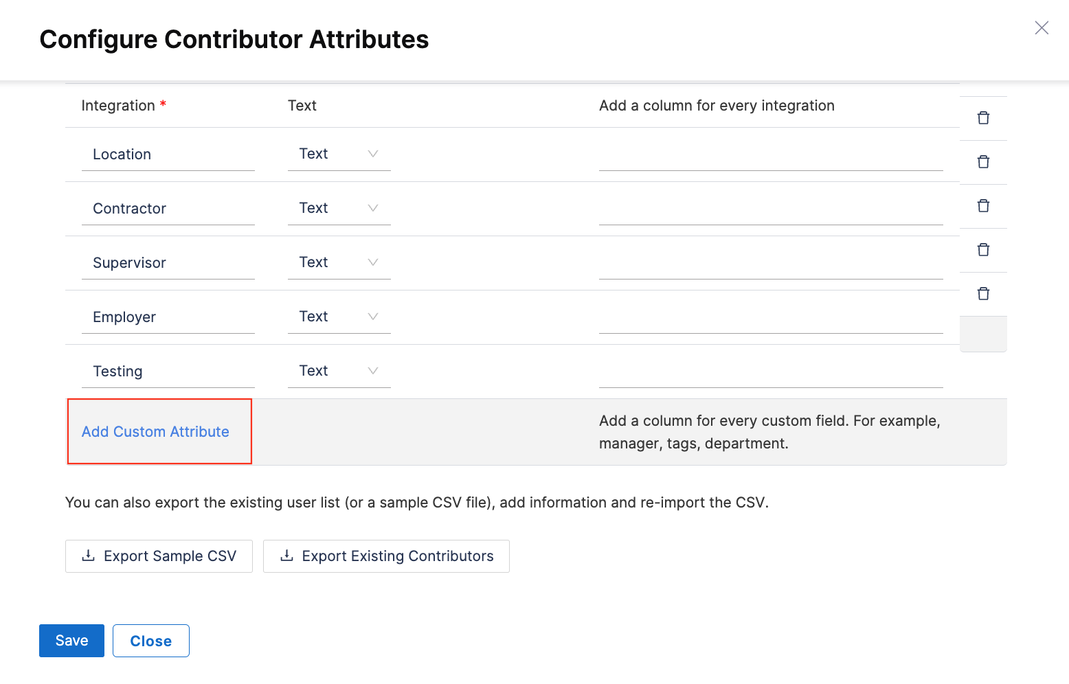 - Click on Save to add the attribute to the contributor records.