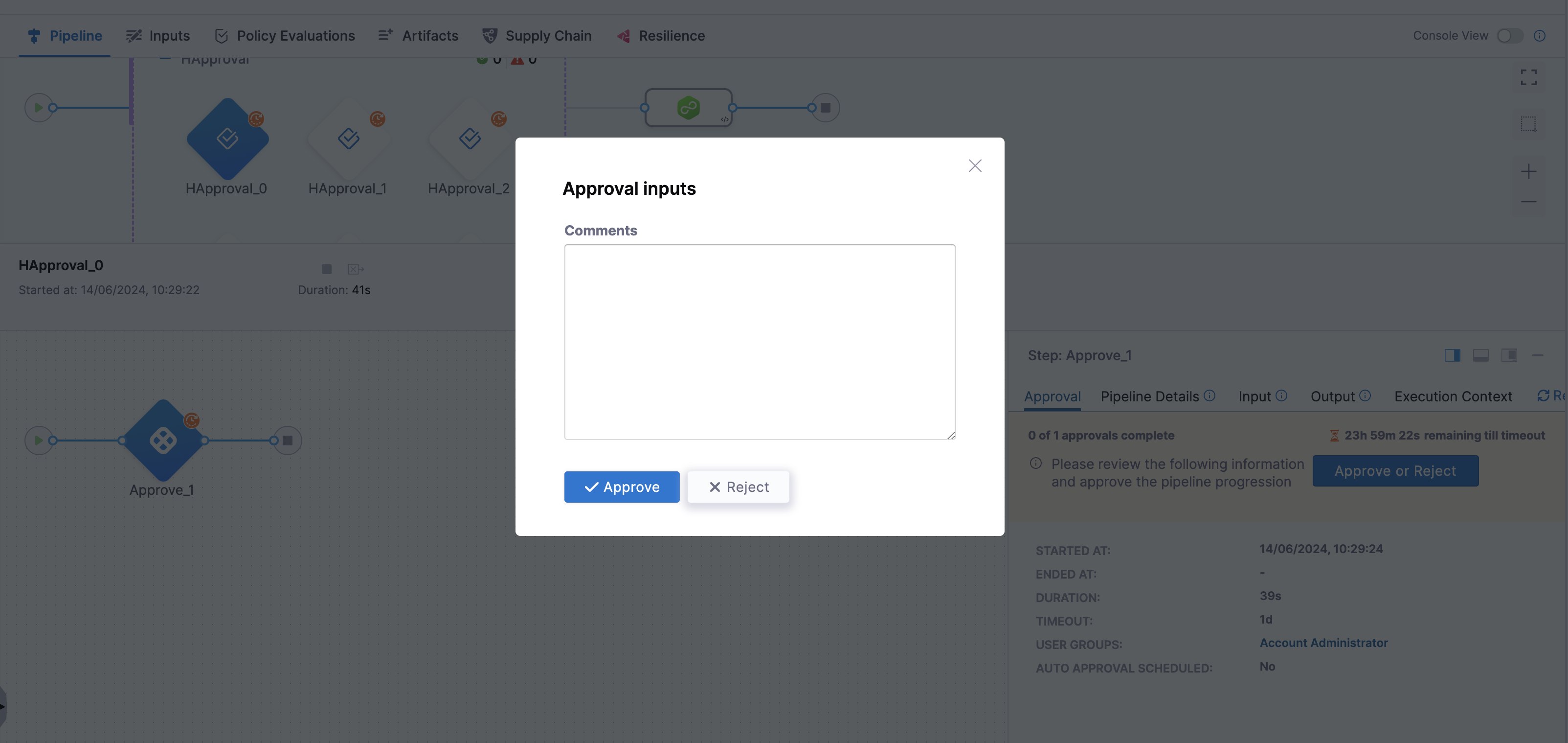 When no Approval criteria is provided then pipeline execution fails with right error message but console view keeps loading (CDS-39560)